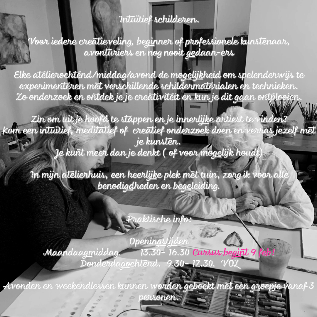 Intuïtief schilderen is een prachtige manier om innerlijke verfbeelden te creëren, waarbij de ziel de vrije hand krijgt. Deze creatieve vrijplaats biedt een ruimte waarin emoties, gedachten en diepere lagen van het bewustzijn tot uitdrukking kunnen komen zonder de beperkingen van technische regels of vooraf bepaalde verwachtingen. Het proces van intuïtief schilderen nodigt je uit om contact te maken met je innerlijke wereld en deze op een unieke en persoonlijke manier naar buiten te brengen. Het is een vorm van expressie die ruimte biedt voor zelfontdekking, heling en zelfacceptatie, waarbij elke penseelstreek een stukje van je ziel onthult.